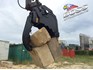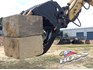 DEMOLITION: Operators may use the BHBG to pull or push down concrete structure. Pick and place large objects with the grab. Crush demolition waste down to a more manageable size. Dig up footing and pick and place in the one movement.