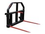 Rata Big Bale Fork -Suitable for handling any size bale, round or square and come complete with a short removable centre tine for safety. The tines are forged spring steel, held in with a conus 2 welded taper bush. 980 mm Tines, Euro Hitch..